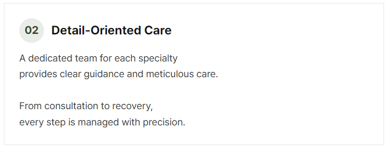 English-friendly care, privacy-focused rooms, and a comfortable boutique setting welcome patients from Korea and abroad.